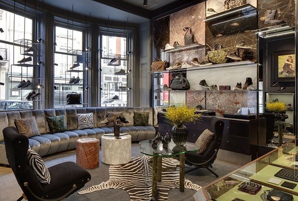 Known for their chic accessories and luxe footwear, Jimmy Choo introduces their men’s flagship store in London’s Mayfair, chosen for its rapid growth in luxury good consumption. The flagship store reflects the masculine aesthetics of the collection, with marble and leather interiors complemented with felt, velvet, and tweed decor splashed with a subdued color palette of black, charcoal, silver, and pops of bright red. Vintage details add a finishing touch, creating a unique experience for the Jimmy Choo man.