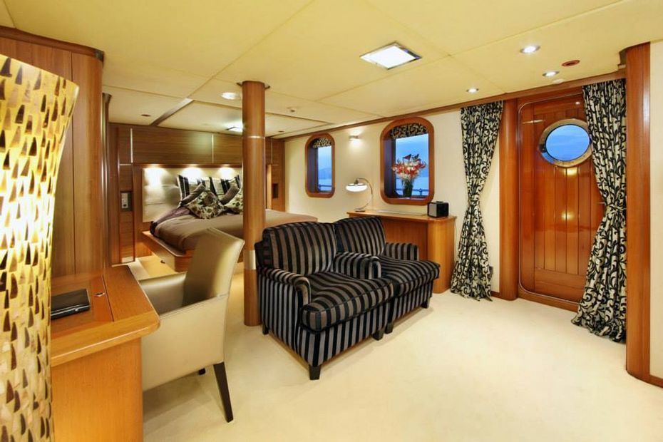 The superyacht's striking exterior is complemented by her eclectically styled interiors, making her the ideal vessel for exploring the globe in absolute luxury.Her facilities include a vast central dining room, an 18 person Jacuzzi, a fully equipped gym, as well as a spa, sauna and beauty salon with a trained therapist on-board.