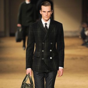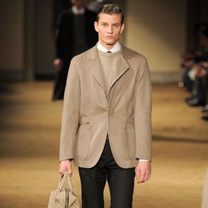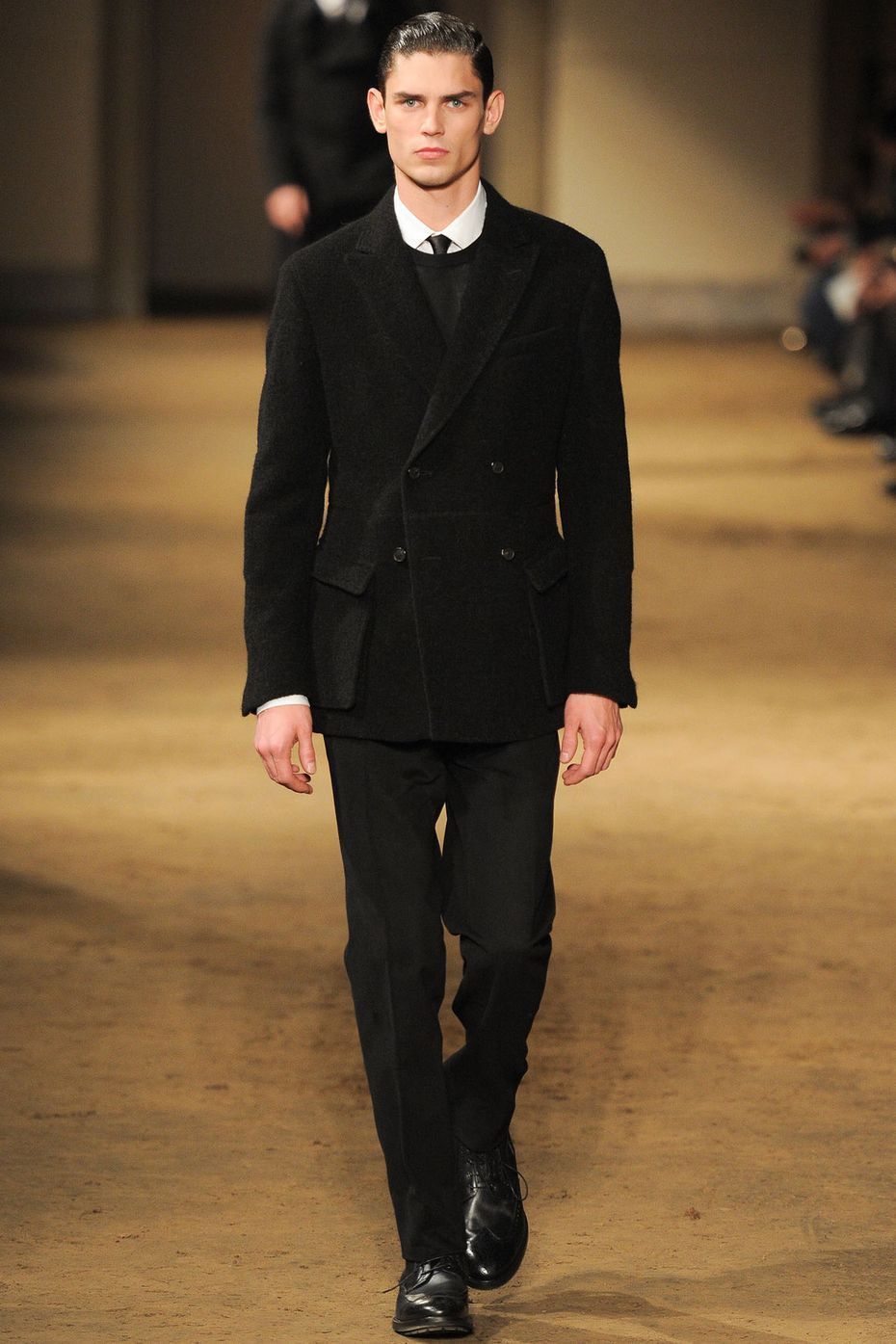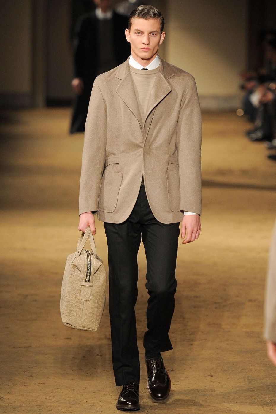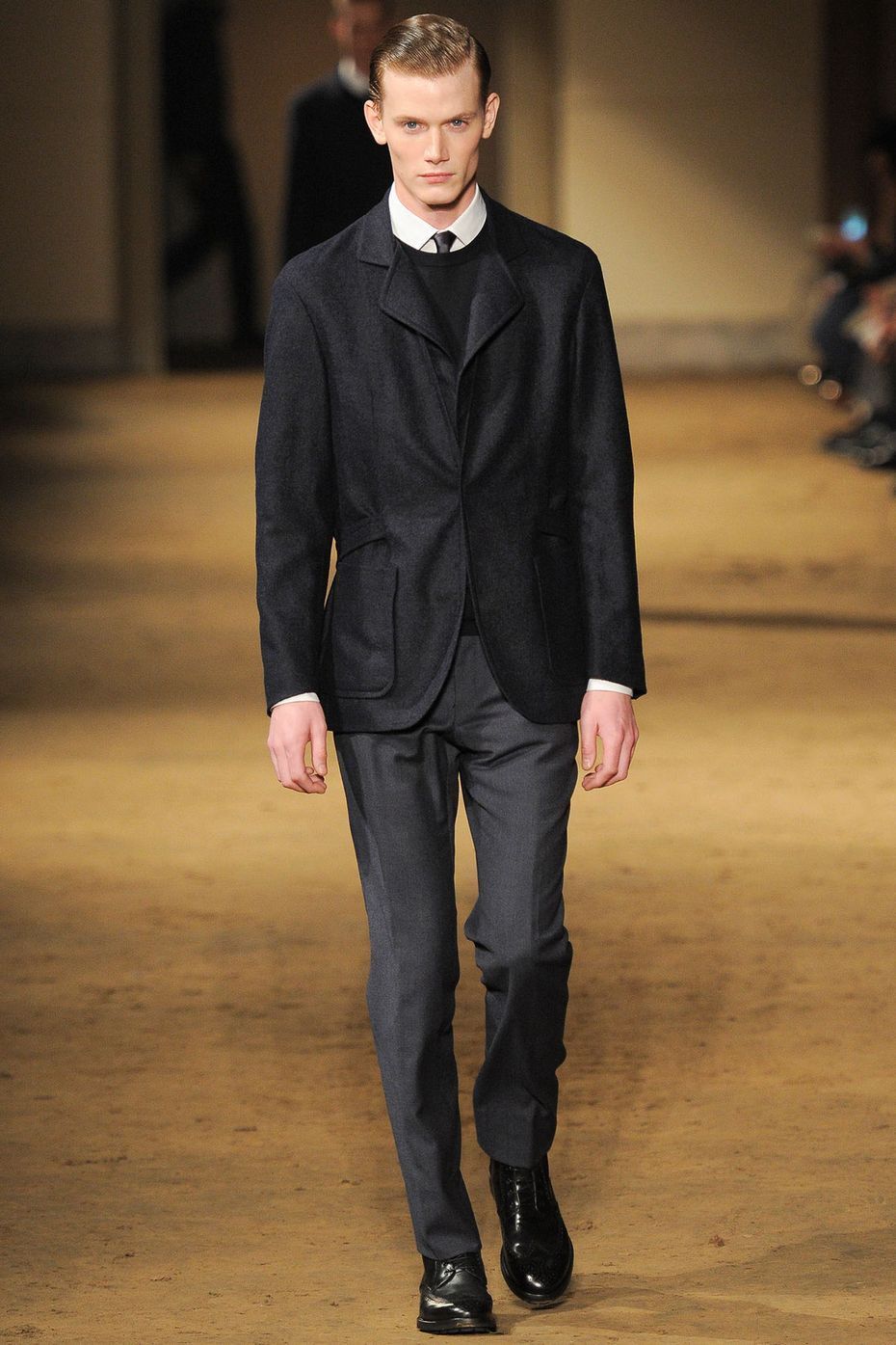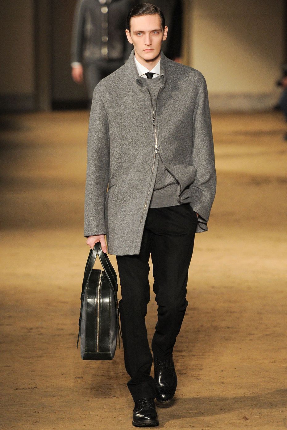 Corneliani kicks off Milan Fashion Week with a smorgasbord of sharply tailored suits and outerwear. Choosing to stay within a color range that greys and dark earthtones, Creative Director Sergio Corneliani designed a supremely chic collection for the conservative label, as one has learned to expect from this privately-owned label.