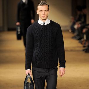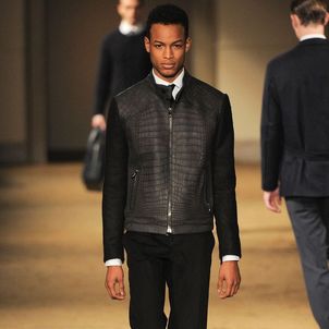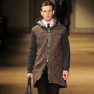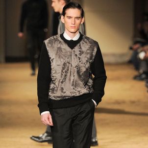 The most outre designs were a handful of fur accented outerwear, as well as one a varsity jacket with a furry front.