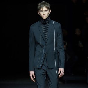 Mixing in more casual garments such as a field jacket or distressed sweatshirt, Van Assche cemented a smart collection.