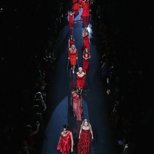 February is American Heart Month, and the American Heart Association launched its "Go Red for Women" campaign to bring awareness to the issue of heart disease among women. The Heart Truth Red Dress Collection fashion show is sponsored every year by the Go Red for Women campaign. Celebrities walked the runway for the show that took place on 6 February in New York City.