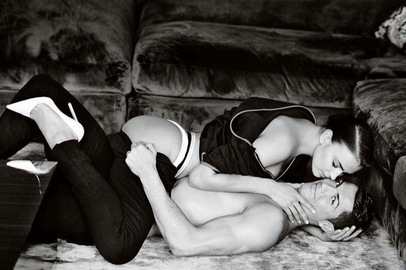 Landing her third Vogue cover, Irina Shayk joins her fiance footballer Cristiano Ronaldo for the June cover of Vogue Spain. The Beach Bunny model poses for Mario Testino in a seductive image where Cristiano poses naked while she models a white dress. The tagline reads “love and football” while the spread featuring Irina and Cristiano is also a bit racy.