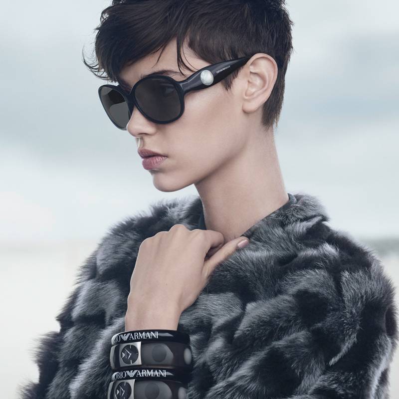 The fall-winter 2014 campaign from Emporio Armani enlists new blood with fashion photographer Boo George who works often with Teen Vogue and other publications. Models Amra Cerkezovic, Benthe De Vries, Alex Wilms and Matt Trethe poses in Ireland’s Dollymount Strand for the soft and ethereal shots. Earlier this week, the mainline campaign from Armani was released, lensed by Solve Sundsbo.