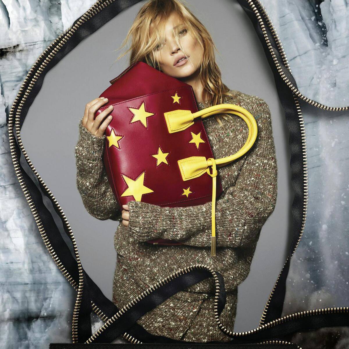 Supermodel Kate Moss appears in Stella McCartney fall-winter 2014 campaign. Shot by duo Mert Alas and Marcus Piggott for the new advertisement, McCartney herself styled the campaign with a focus on the Cavendish bag.