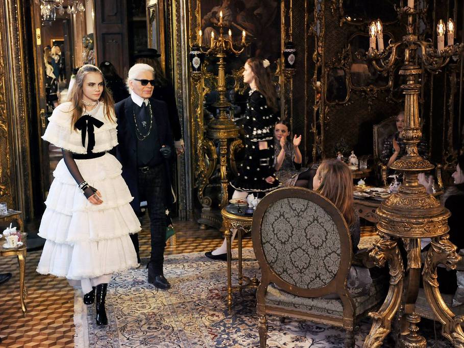 Last evening, Karl Lagerfeld presented the CHANEL Métiers d’art show in a glorious rococo setting at the Schloss Leopoldskron, the 18th Century Austrian castle, acclaimed for its romantic architecture and view of lake Leopoldskroner Weiher.