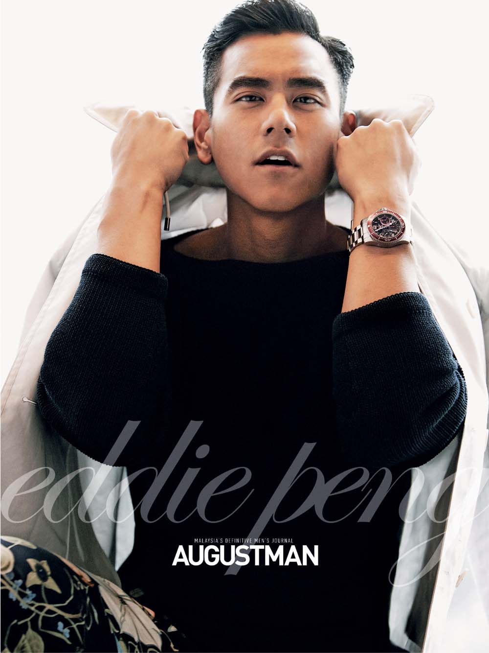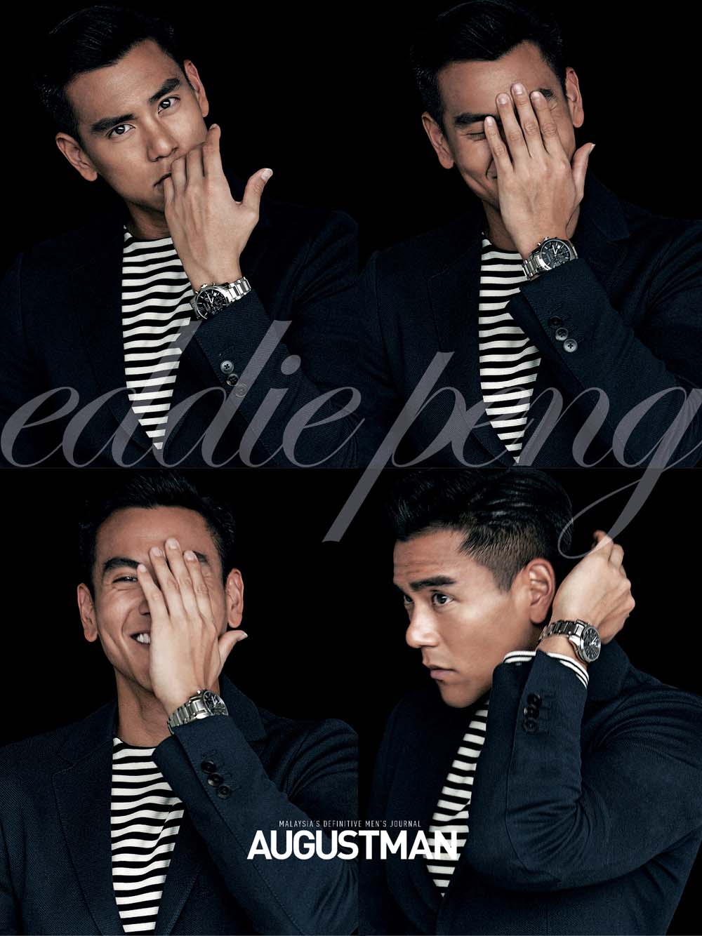 The new Longines Ambassador of Elegance Eddie Peng graces the cover of the March edition of August Man Malaysia to dish on his challenges in filming two blockbuster movies 'Unbeatable' and 'Rise of the Legend', where he portrayed martial arts master Wong Fei Hung. Photographed by Kim Mun (Hopscotch) and outfitted by group creative director Melvin Chan, Peng sports head to toe looks from the Italian label Gucci Resort 2015 collection, accented by a series of Longines watches collection and exclusive TVR OPT Eyewear.