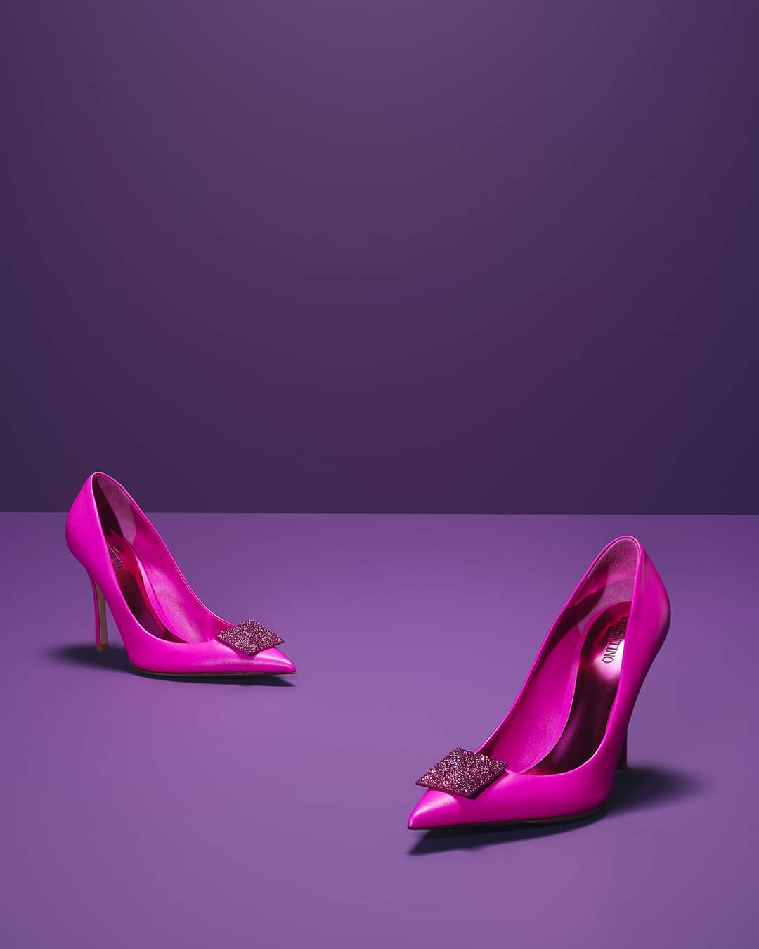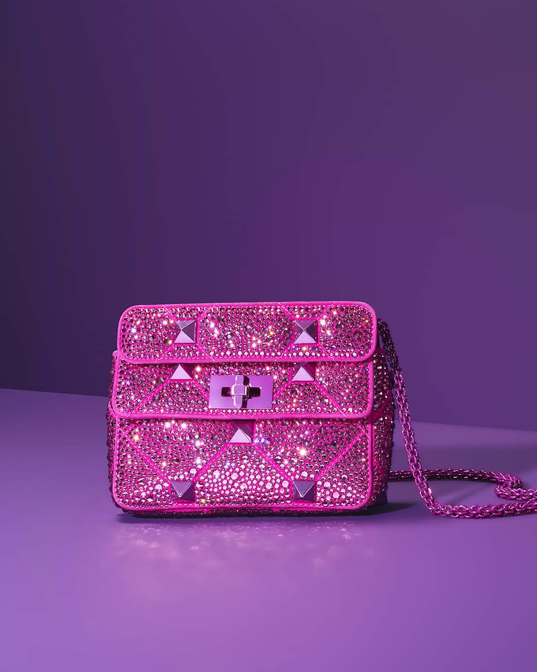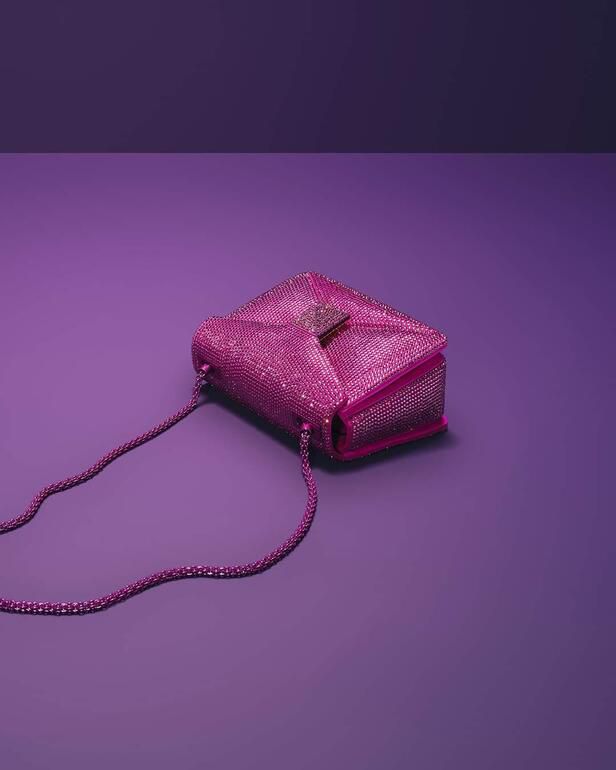 Crystal-embellished, studded and vibrant for the holidays. Valentino accessories in the Pink PP hue reflect the joys of the season.