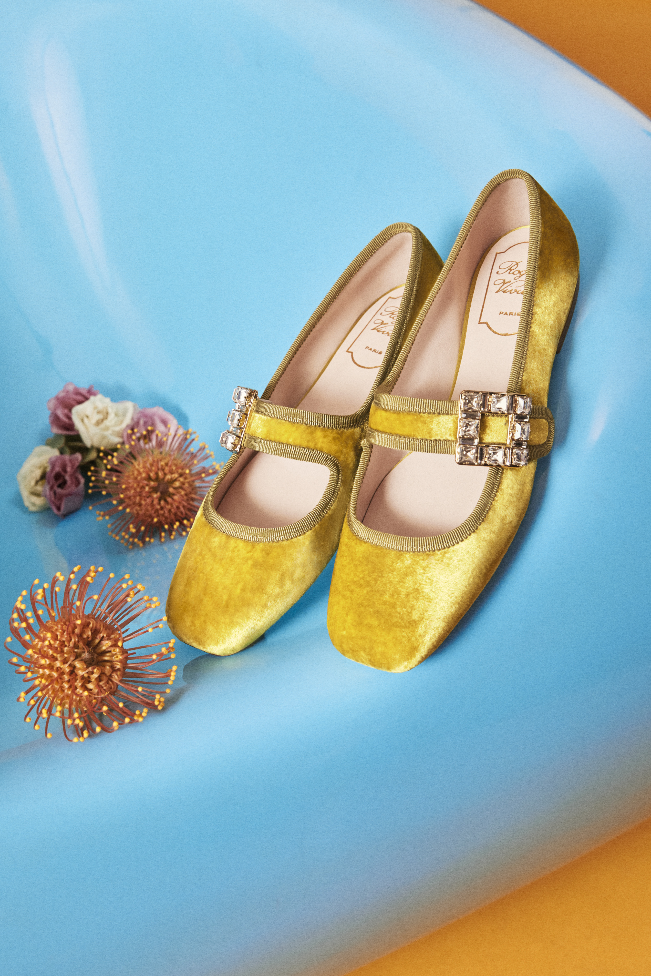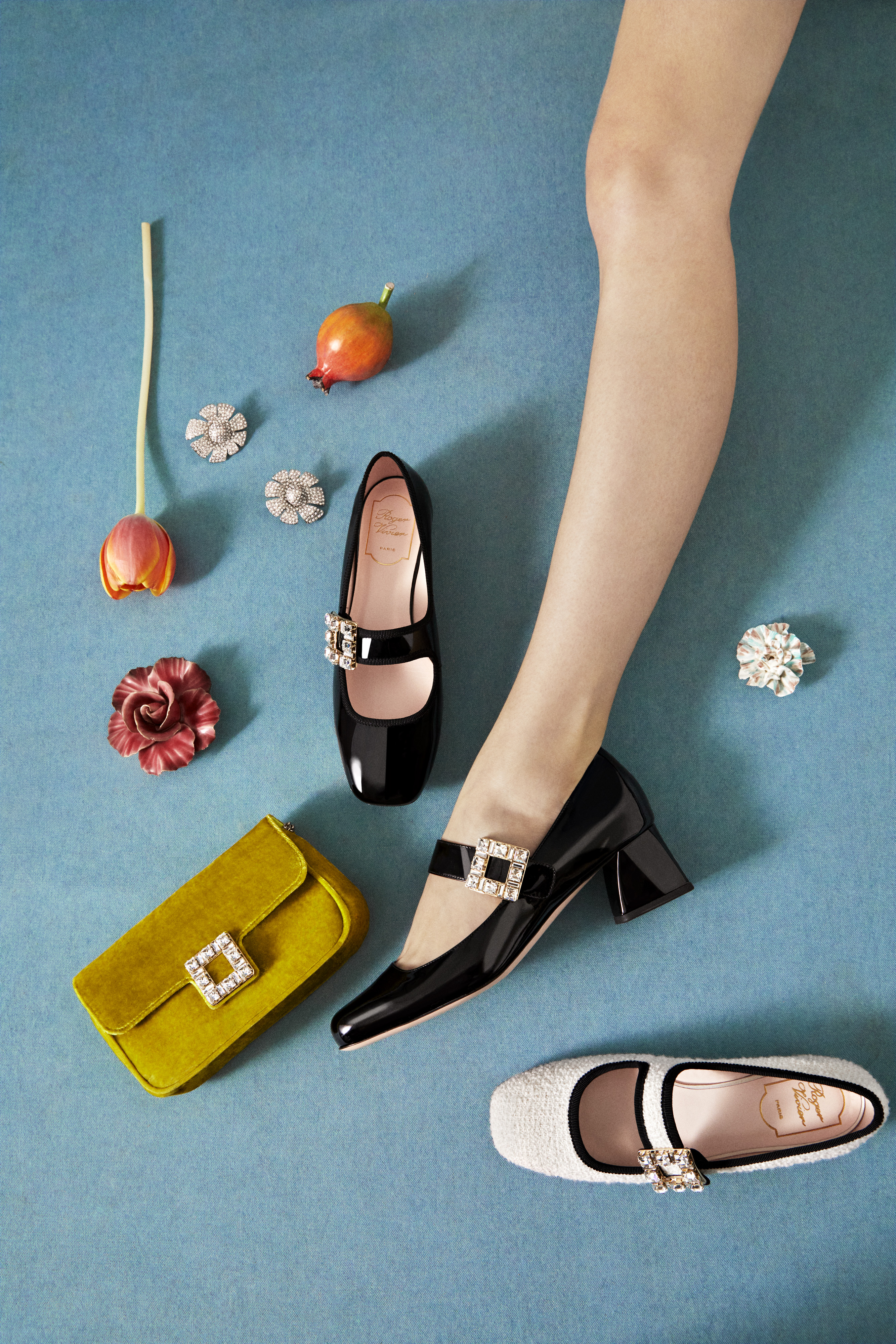 Inspired by the Belle Vivier, the Tres Vivier Baby is a stylish icon featuring a simple feminine 60's shape enhanced by a series of exquisite details - the brand's signature crystal-encrusted buckle and a pyramidal block heel.