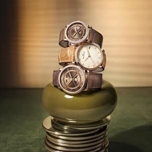 The Villeret line, beloved for its timeless aesthetics, evolves with a series of exquisite updates in both color and material. The collection introduces new, stunning autumnal shades with the debut of a finely grained opaline dial and a rich golden brown dial. These new faces are paired with sumptuous, interchangeable leather straps in four sophisticated new shades: brown, blue-grey, honey, and beige nubuck velvet, all featuring a supple barolo finish that develops a natural patina over time.