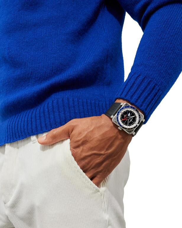 But the compass motif here goes beyond mere aesthetics. This is true utility. The dial’s flange is marked with a degree scale and cardinal points (at 6, 12, 18, and 24 hours), serving a genuine navigational function. The diamond-shaped GMT hand, reminiscent of a traditional magnetic compass needle, can be aligned under sunlight to actually find your direction.