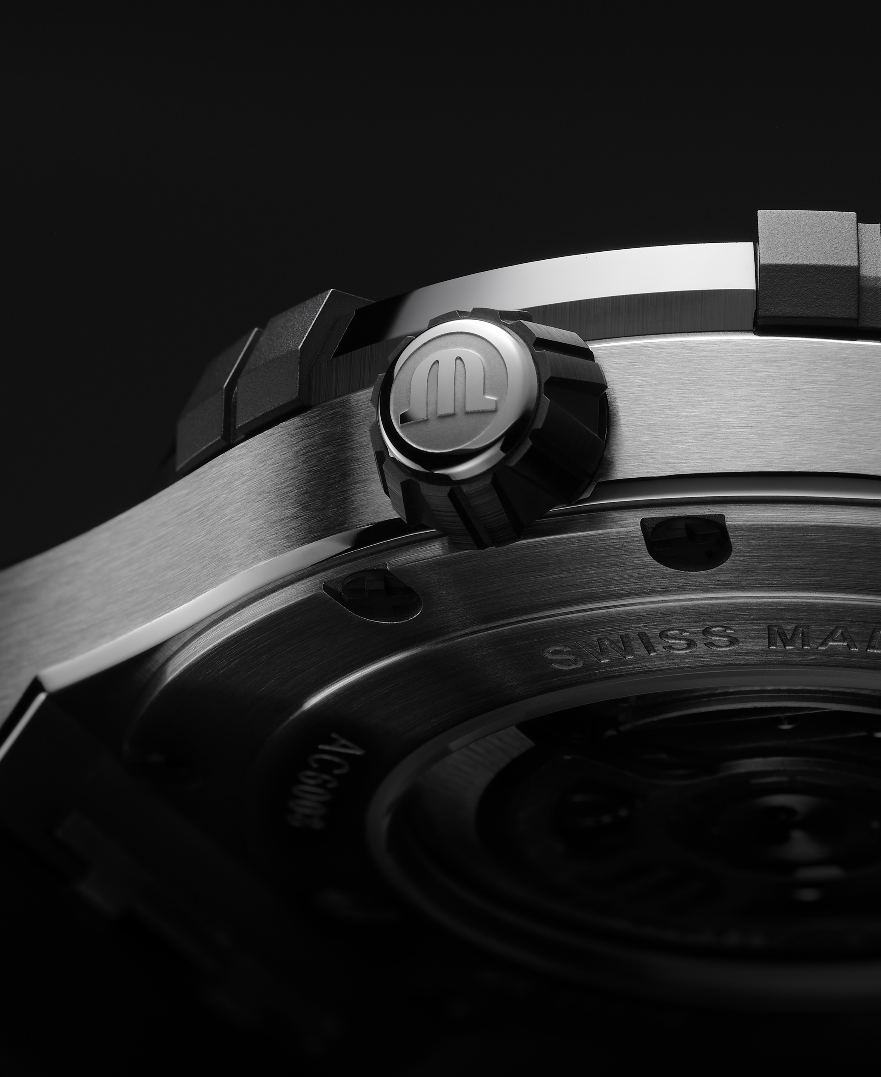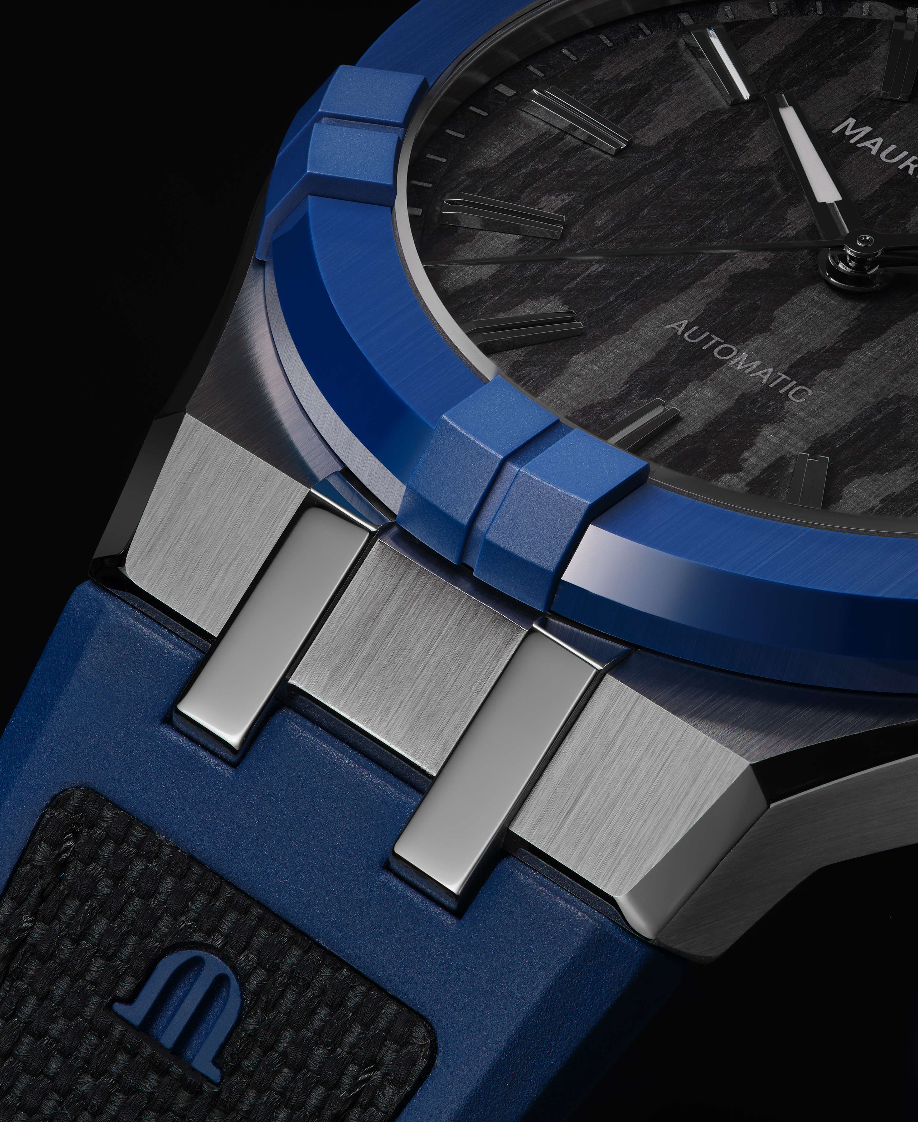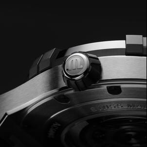 The timepiece is supplied on a sporty rubber strap featuring a textile-look insert that affixes to the case with high-gleam attachments. It features the ingenious and patented ML Easy Change system which allows the wearer to create an alternative look without the need for tools. This innovative technology uses pivoting links where the bracelet meets the case body to ensure a seamless transition between styles.