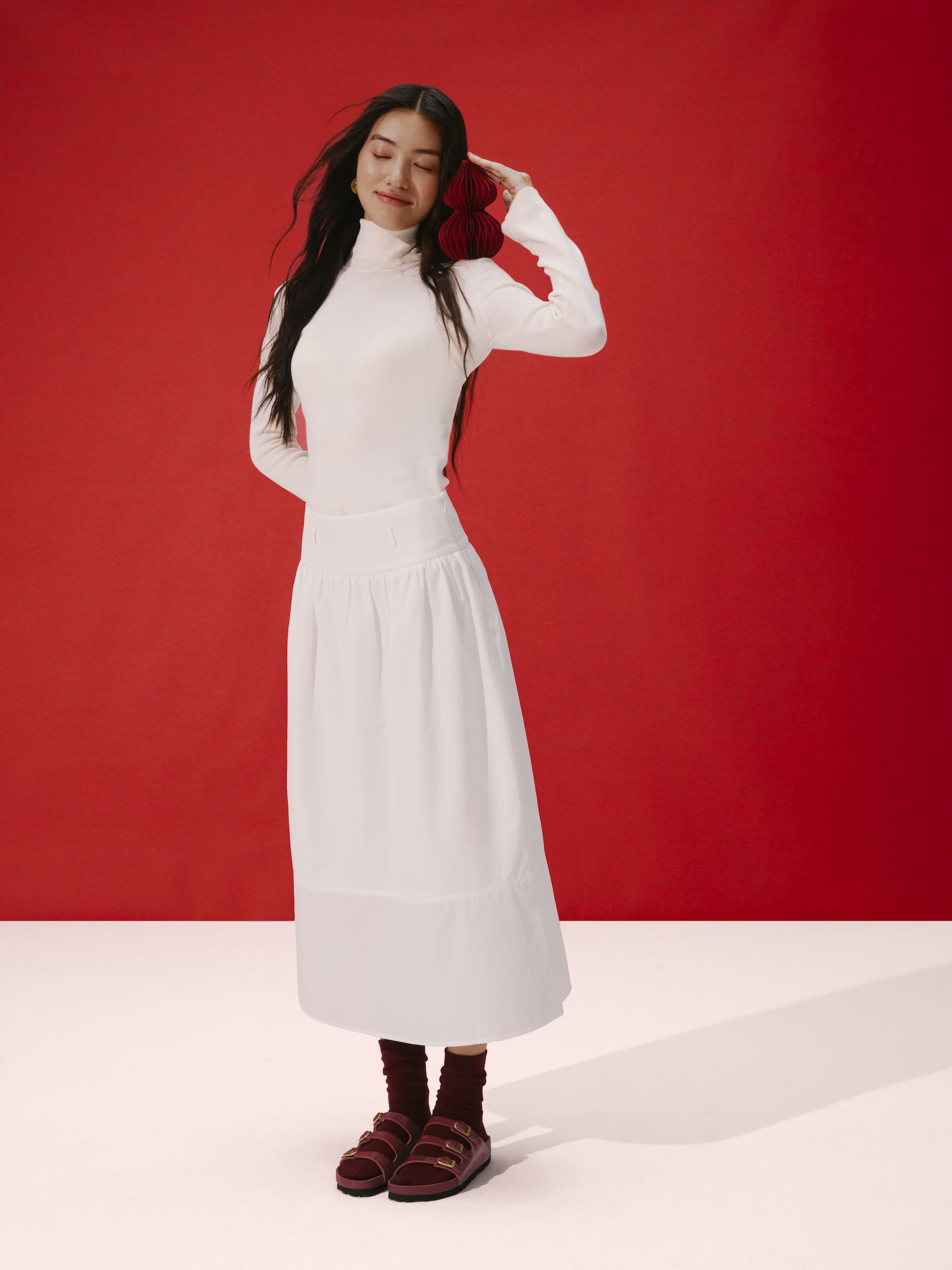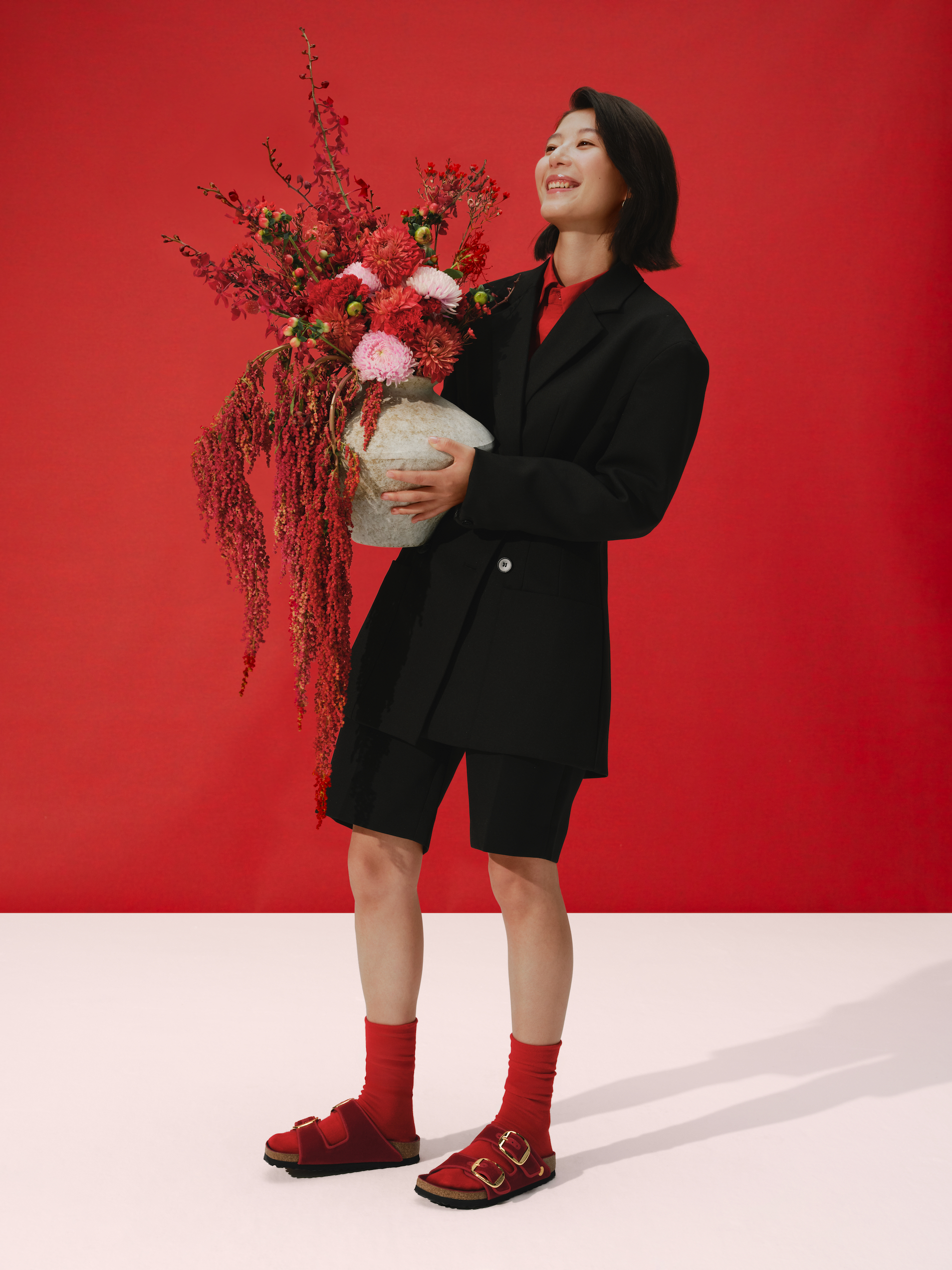 The Florida fine strap sandal receives a sophisticated execution in a deep Zinfandel red, a color chosen to represent the prosperity and good fortune central to the festival. Adorned with three golden D-buckles and high-shine leather, this interpretation brings a sense of uncompromising luxury to the original cork-latex footbed. The deep red hue serves as a direct nod to cultural traditions that believe wearing the shade invites success in the coming year.