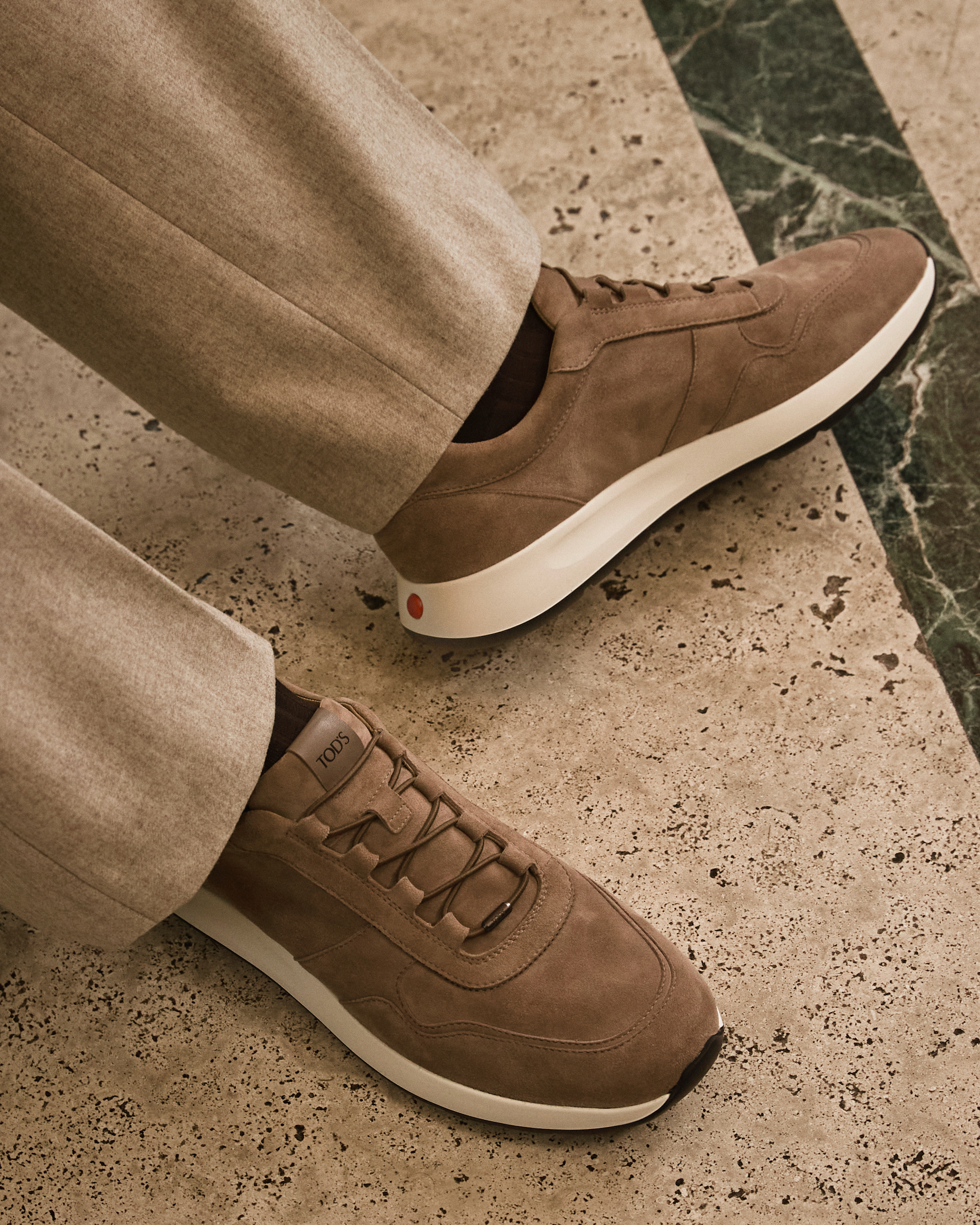 Innovation meets the city streets with the introduction of the Red Dot sneaker, an urban shoe that combines craftsmanship with technological advancement. This footwear is distinguished by a singular red mark on the heel, a new symbol of belonging to the world of Tod's. Designed for a life that moves effortlessly between professional duties and leisure, the sneaker features a flexible construction and an ultra-light sole. High-quality materials and elastic lacing ensure that technical progress never comes at the cost of refined style.