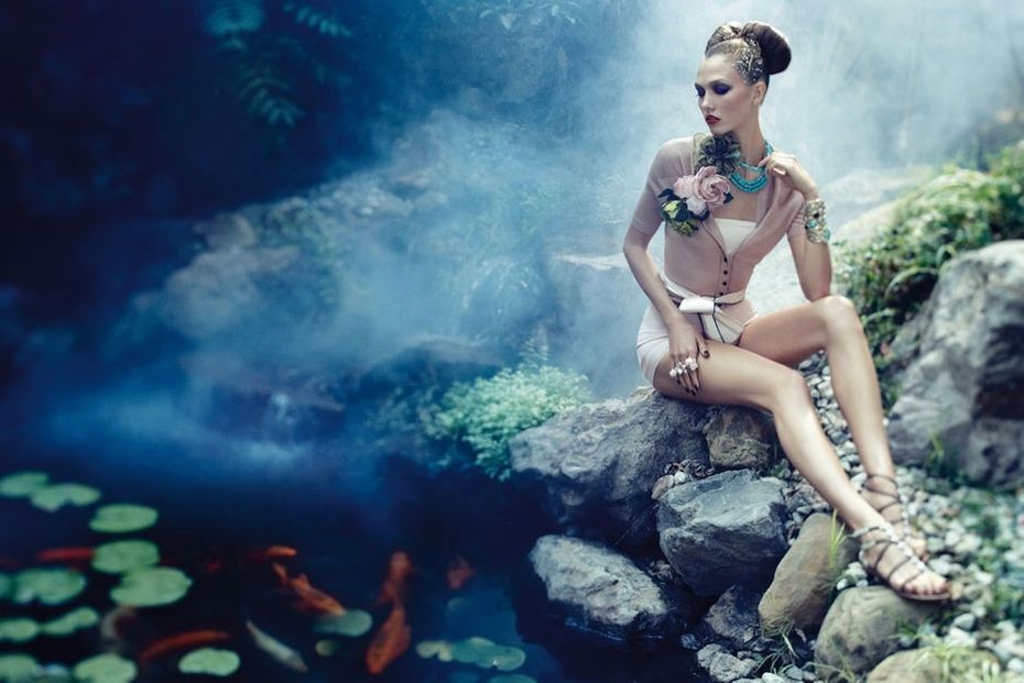 Supermodel Karlie Kloss photographed by Alexi Lubomirski in the December edition of Vogue Germany magazine.