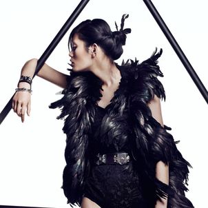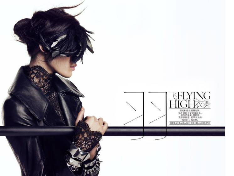 Photographer Lachlan Bailey shoots model Ming Xi in a variety of cool looks in black! Styled by Melanie Huynh, Ming is clothed in full splendor of feather, lace and leather in the fashion spread entitled "Flying High".