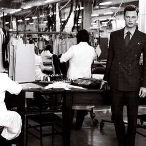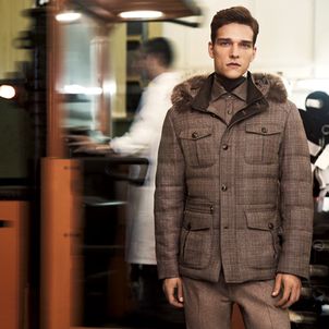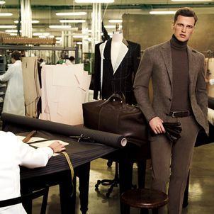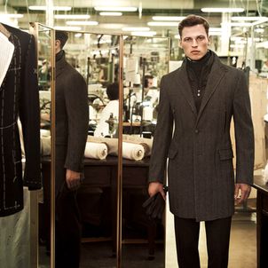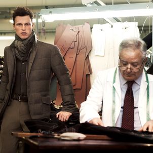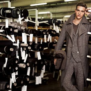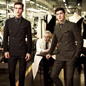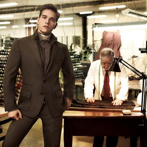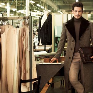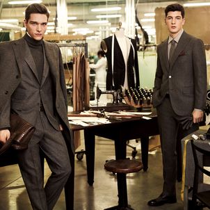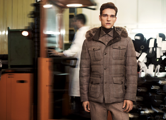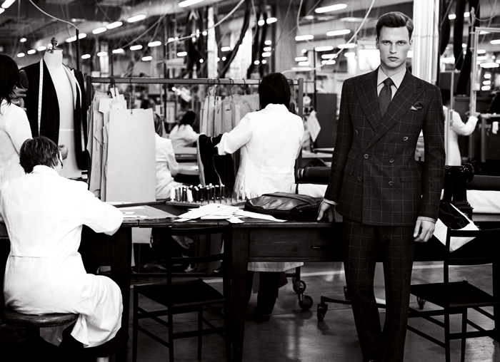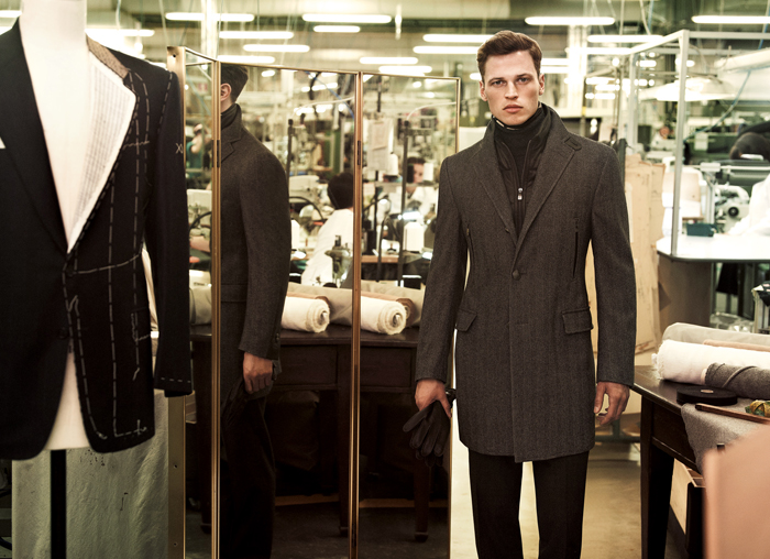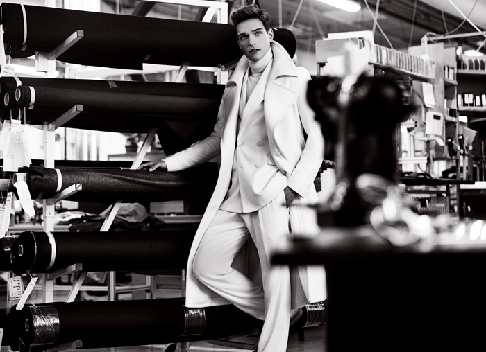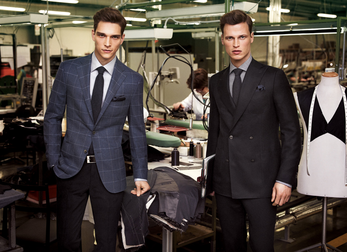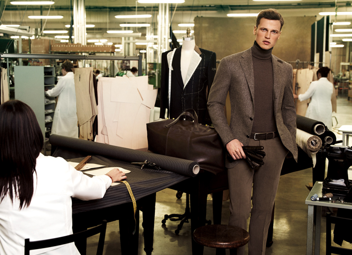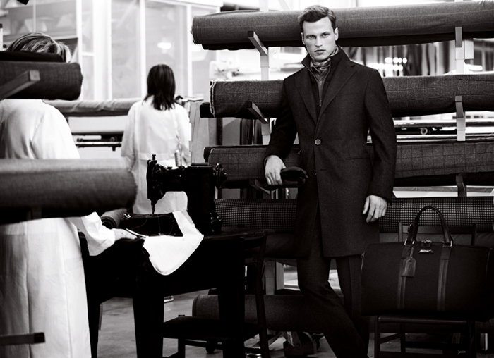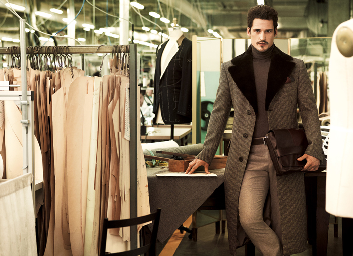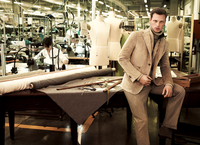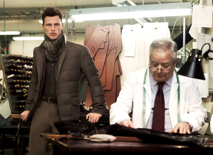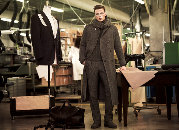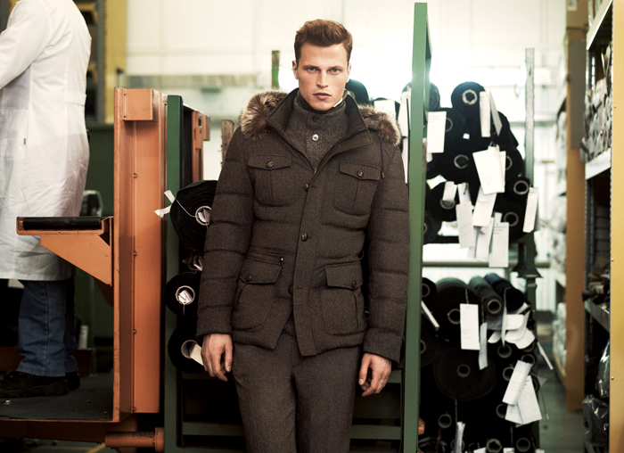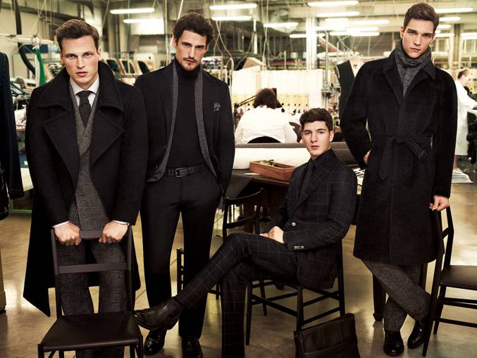 Models Sam Webb, Andrea Preti, Lars Burmeister and Alexandre Cunha appear in the fall/winter 2012 lookbook of Italian label Corneliani. Captured inside a textile factory, the models don the tailored lineup, revealing the soft elegance and easy comfort that inspired every single look. Clad in suits that are both modern and sartorial, complemented by great coats, or mixed with a more casual counterpart, the guys perfectly emphasize the classic silhouettes of refinement.