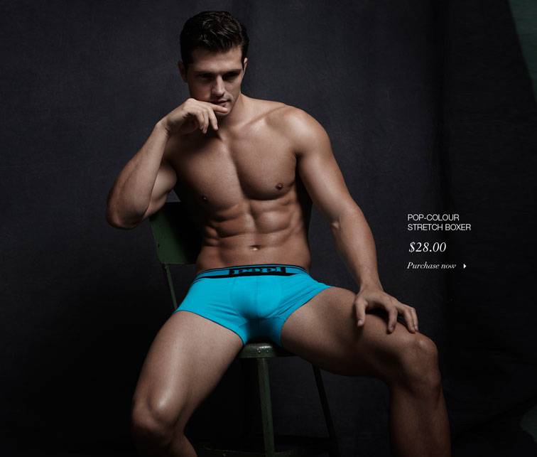 Next season will be about colorful underwear, and Canadian retailer Simons enlists model Diego Miguel to showcase its latest offering. Sporting colorful or striped boxers, the Brazilian model poses for simple, but at the same time appealing images, unveiling his bronzed and chiseled body.