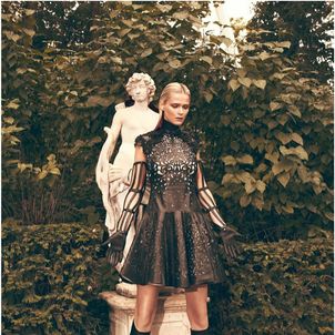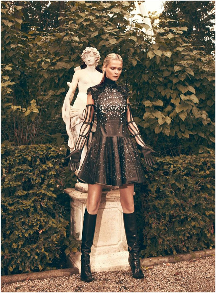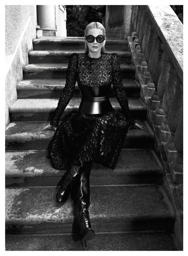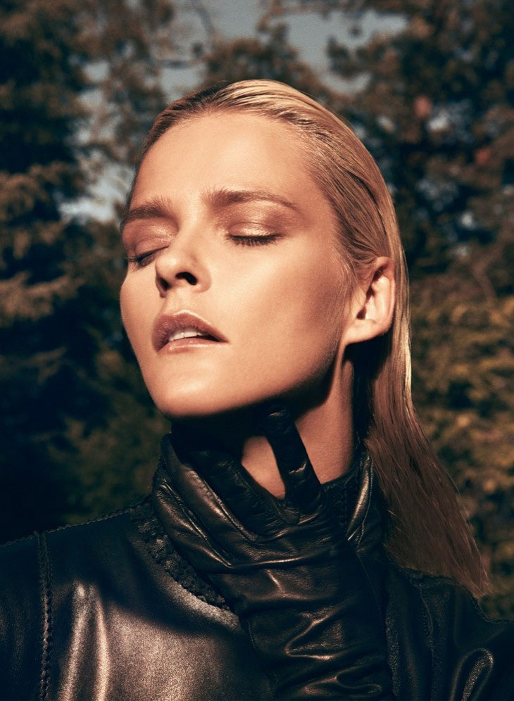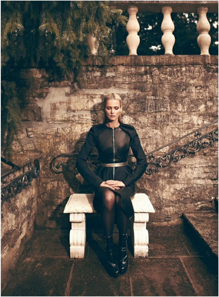 The September issue of Vogue Latin America taps Carmen Kass for a cover story of strict glamour lensed by Koray Birand. Stylist Sarah Gore Reeves selects black pieces from the autumn collections of Guy Laroche, Lanvin, Costume National and Miu Miu amongst others for the slick, outdoor images. Luminous makeup by Ali Riza Ozdemir and sleek hair by Ali Yilanci offer a powerful look for the Estonian beauty.