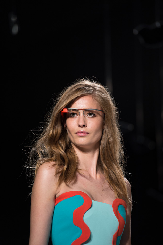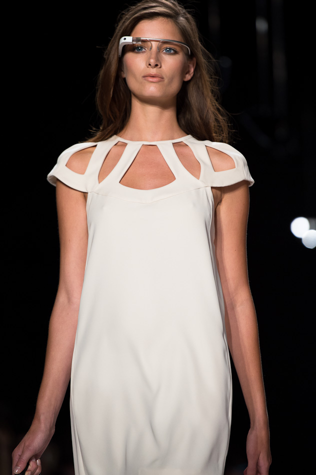 At New York Fashion Week, Diane von Furstenberg and Google joined forces to debut Google's "Glass" on her label DVF’s Spring 2013 fashion show. Google’s Project Glass transmitted first-person footage from models strutting down the runway, Diane Von Furstenberg herself, and other DVF staffers. The Diane Von Furstenberg Google Plus page was updated regularly for a short period leading up to the show itself with images taken using the glasses, which gave us a glimpse of the Glass in action