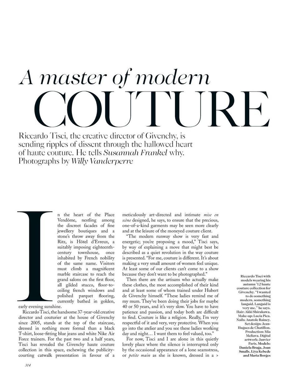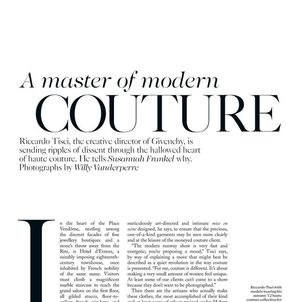 An exclusive interview with the Creative Director of Givenchy by Susannah Frankel for the October issue of Vogue UK.