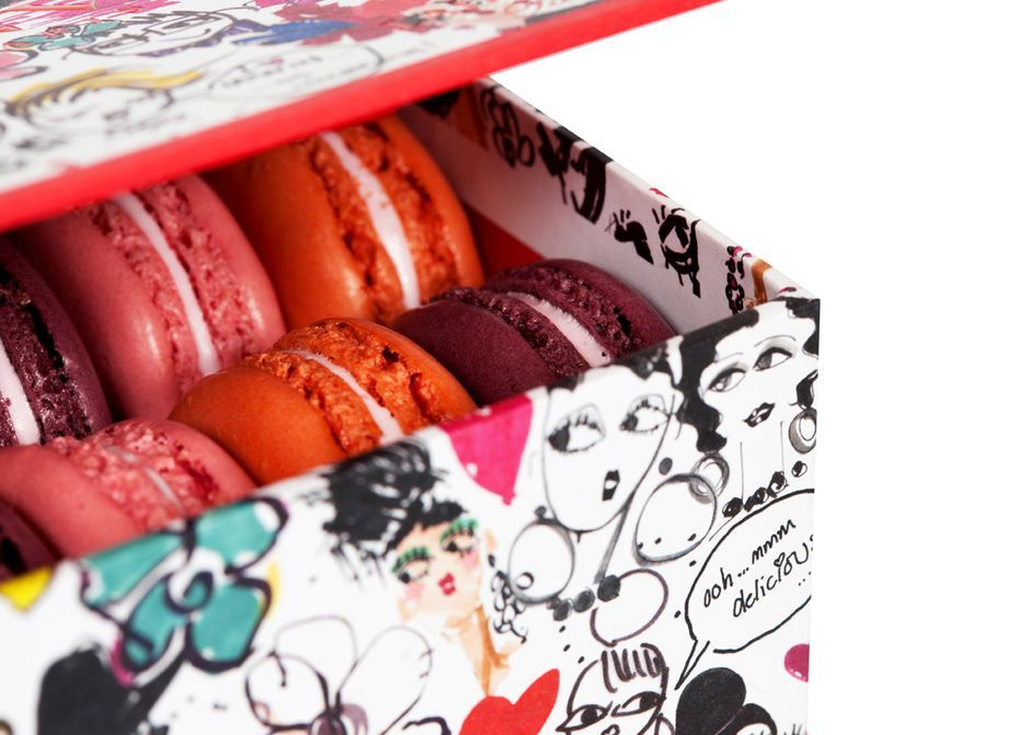 Just in time for Paris Fashion Week, Lanvin collaborates with the famous macaroon house Ladurée on a limited edition box of macaroons featuring Lanvin's signature illustrations.