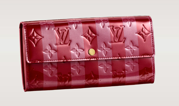 For Valentine’s Day 2012, Louis Vuitton is decorating its leather goods and accessories in stripes. Offering a contemporary take on the historic striped canvas, the new styles are combined with the classic Monogram flower. The small leather goods collection features two new handbags (Alma BB & Wilshire PM), wallet, purse, cosmetics clutch and a mirror case. The new collection will be in stores from January 2012.