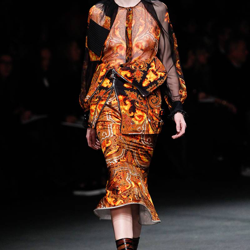 Riccardo Tisci’s sublime Givenchy collection saw him return to the chic street sensibility that characterized his reinvention of the house, as he morphed inspirations taken from Gypsy culture with the classics that he has so suavely appropriated as his own—sweatshirts, biker jackets, and duffle coats among them.