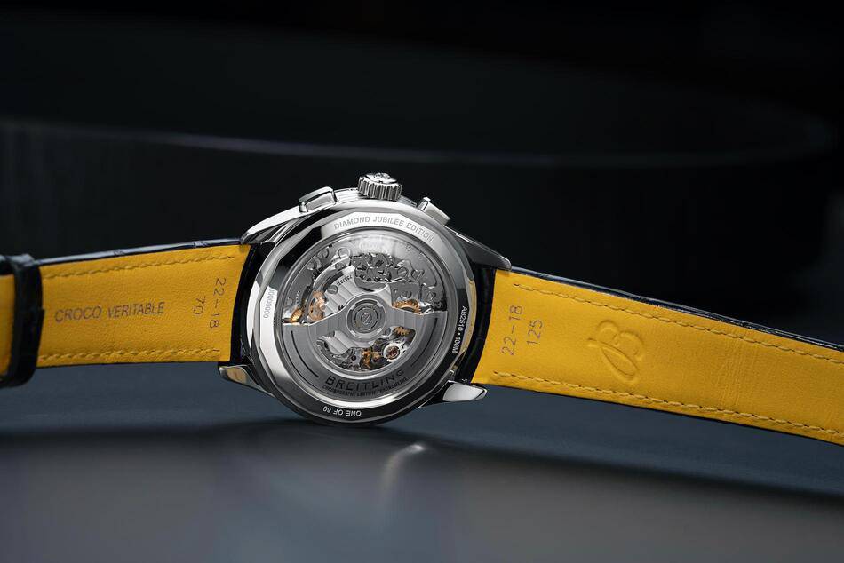 Beneath the 42-millimeter stainless steel exterior lies the Breitling Manufacture Caliber B25, a COSC-certified chronometer that orchestrates a complex symphony of time. The dial balances intricacy with clarity, displaying day, date, and month alongside a poetic moon-phase indicator. To ensure its status as a collector's object, the steel caseback is engraved with "ONE OF 60" and "DIAMOND JUBILEE EDITION," securing each watch as a numbered tribute to this historic year.