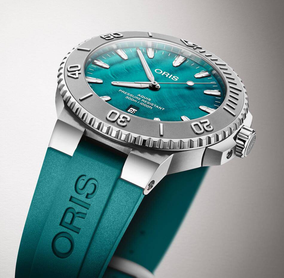 The timepiece is powered by the Oris Calibre 733 automatic movement which ensures that function follows form with a 41-hour power reserve. A turn of the case reveals a stainless steel back featuring special engravings that pay homage to the oysters at the heart of this story.