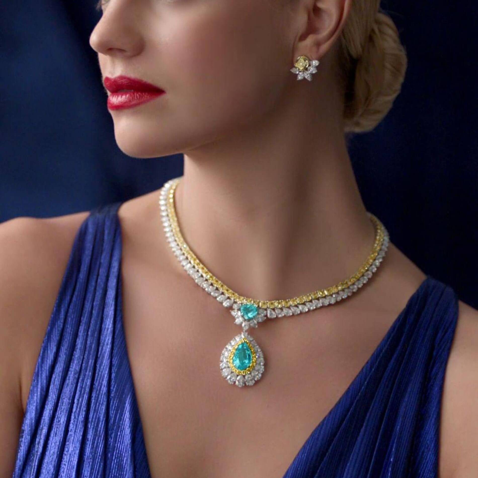 A contemporary ode to the original jewel, the Maharani Necklace endlessly captivates with rare Paraiba tourmalines and sparkling yellow and white diamonds